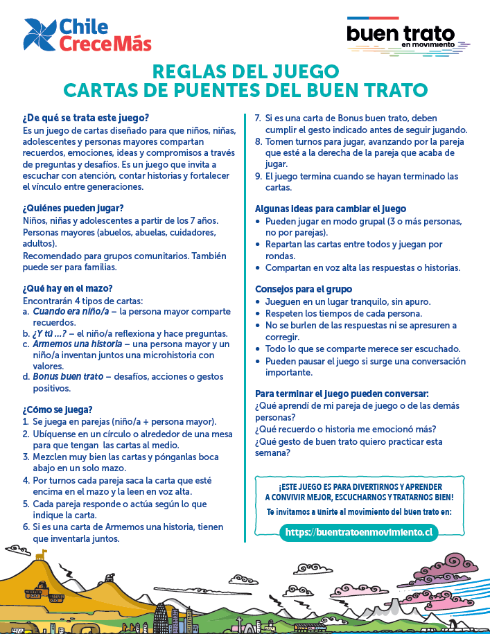 Aquí encontrarás recursos para imprimir, recortar, conversar y crear. Son materiales pensados para niñas, niños, adolecentes, familias, educadores y todas las personas que quieran sumarse al movimiento del buen trato.